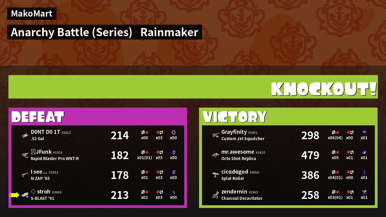 | Medals | #1 Overall Splatter #1 Enemy Splatter #1 Rainmaker Stopper | ||