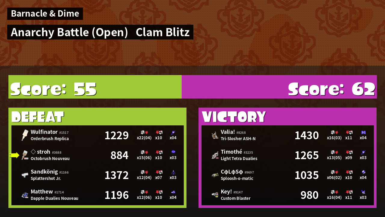 | Mode | Clam Blitz - Anarchy Battle (Open) | ||