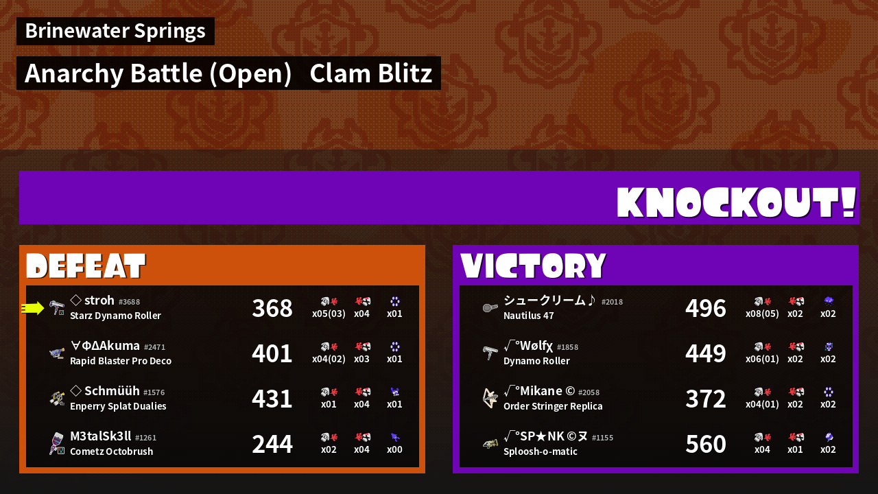 | Mode | Clam Blitz - Anarchy Battle (Open) | ||