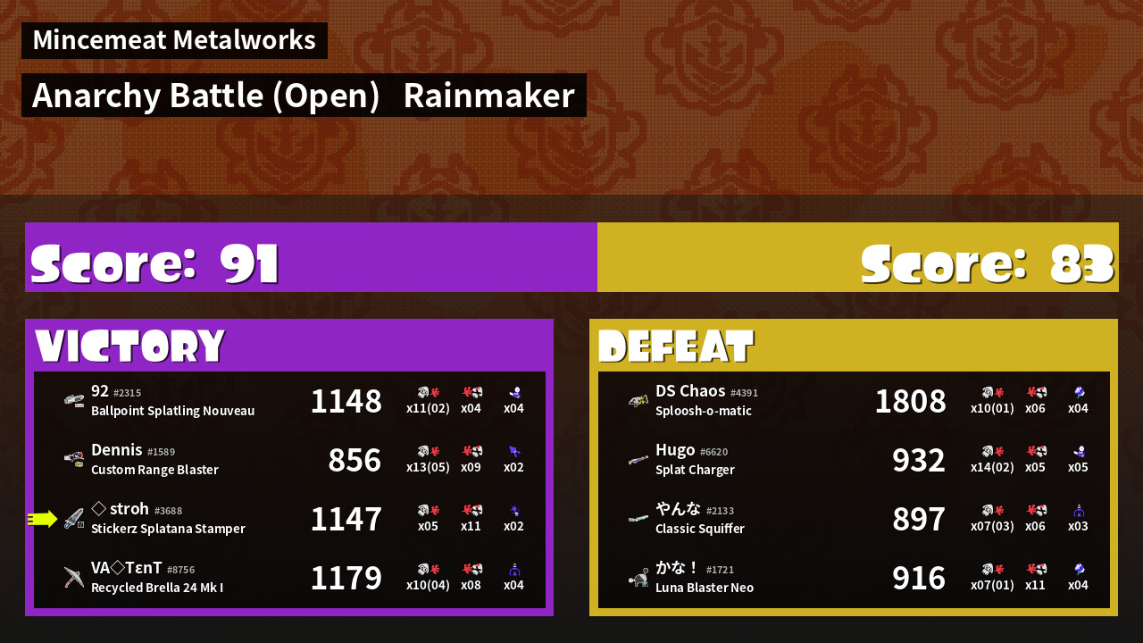 | Mode | Rainmaker - Anarchy Battle (Open) | ||