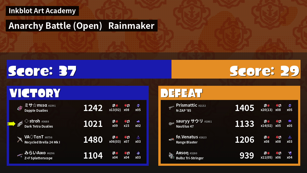 Name | Weapon | Inked | ![]() |