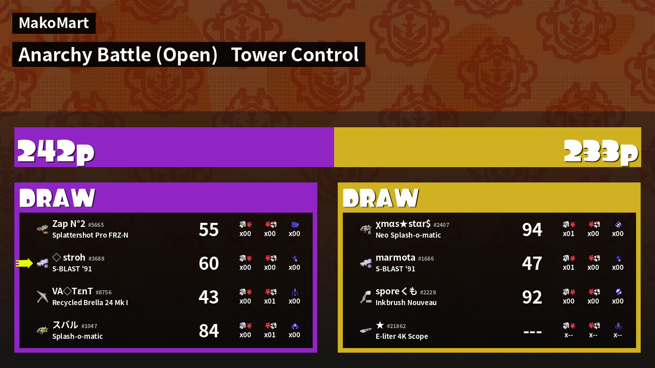 | Mode | Tower Control - Anarchy Battle (Open) | ||