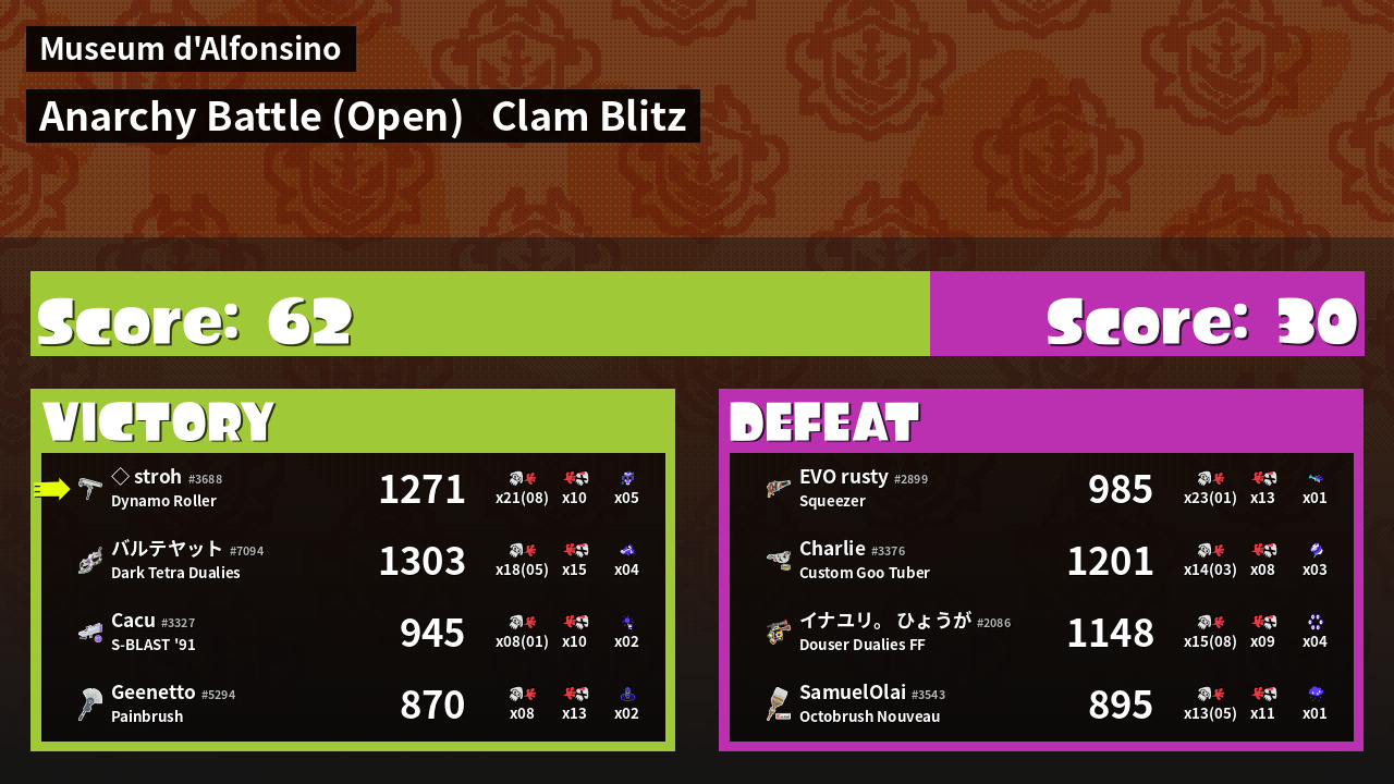 | Mode | Clam Blitz - Anarchy Battle (Open) | ||