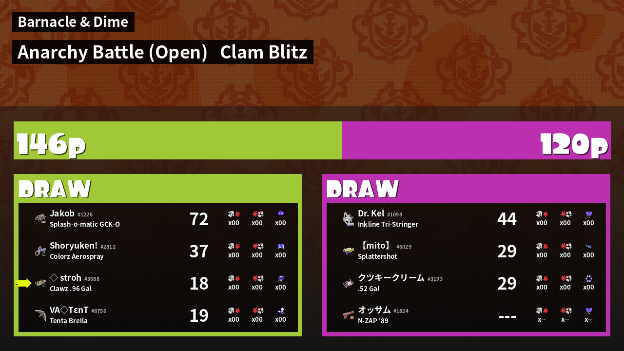 | Mode | Clam Blitz - Anarchy Battle (Open) | ||