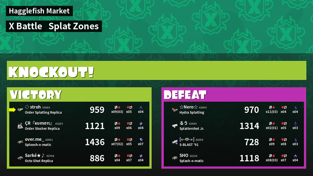 | Medals | #1 Overall Splatter #1 Splat Zone Guard #1 Splat Assister | ||