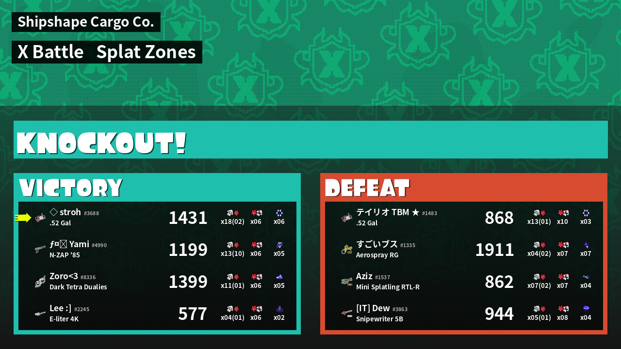 | Medals | #1 Overall Splatter #1 Splat Zone Guard #1 Turf Inker | ||