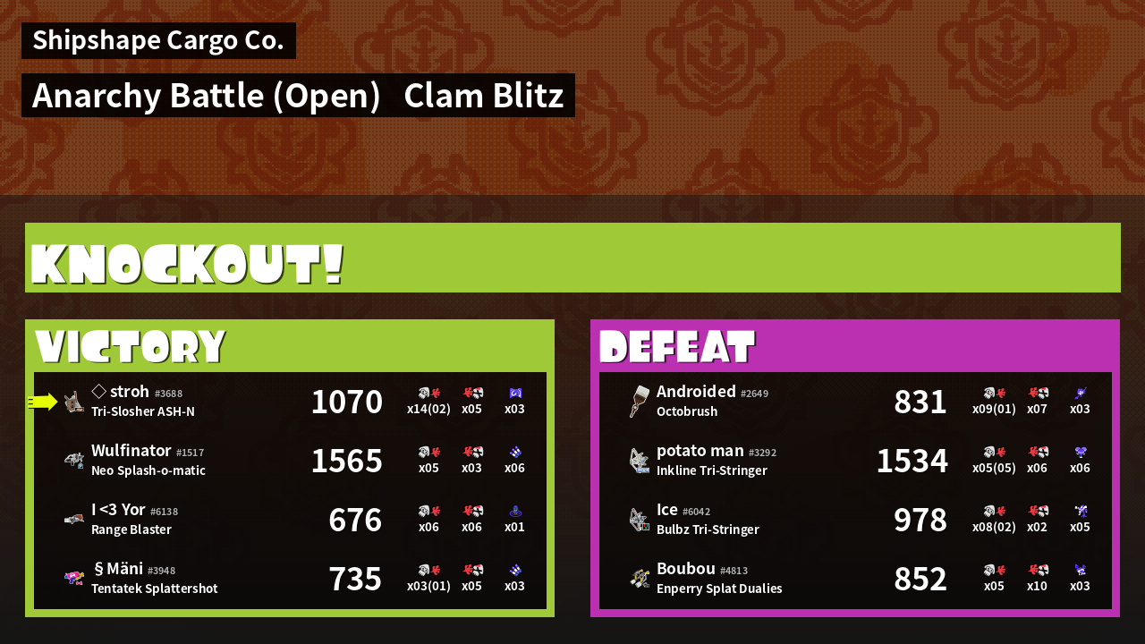 Kills / Deaths | 12 + 2 / 5 > Kill Ratio: 2.40 | ||