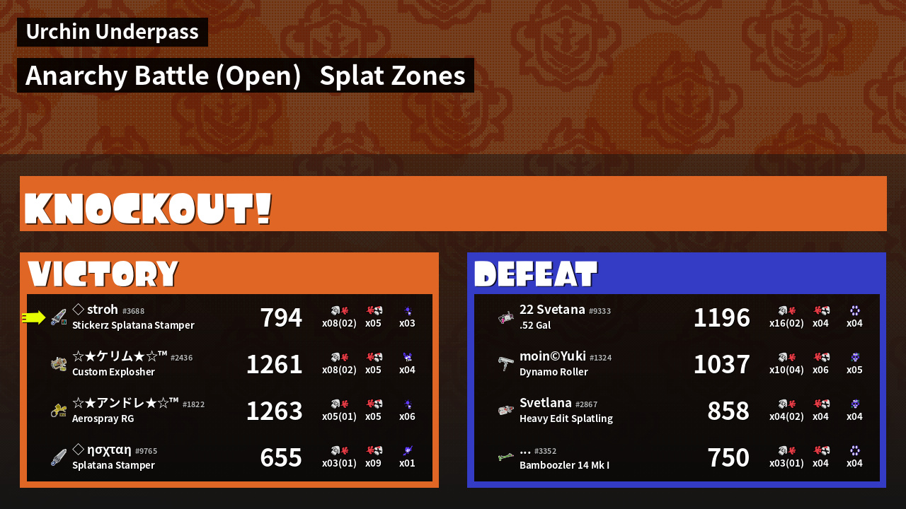 | Mode | Splat Zones - Anarchy Battle (Open) | ||