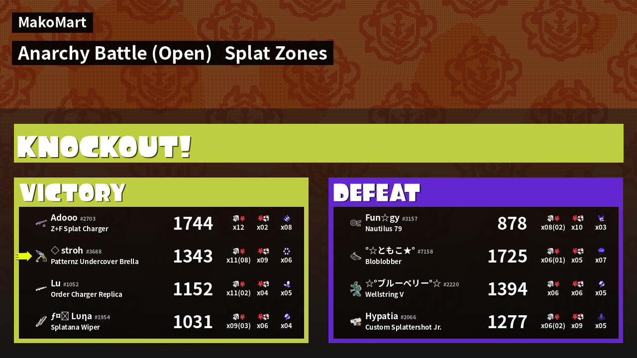 | Mode | Splat Zones - Anarchy Battle (Open) | ||