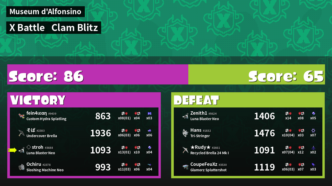 | Mode | Clam Blitz - X Battle | ||