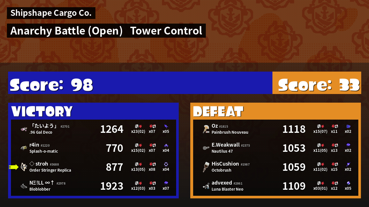 | Mode | Tower Control - Anarchy Battle (Open) | ||