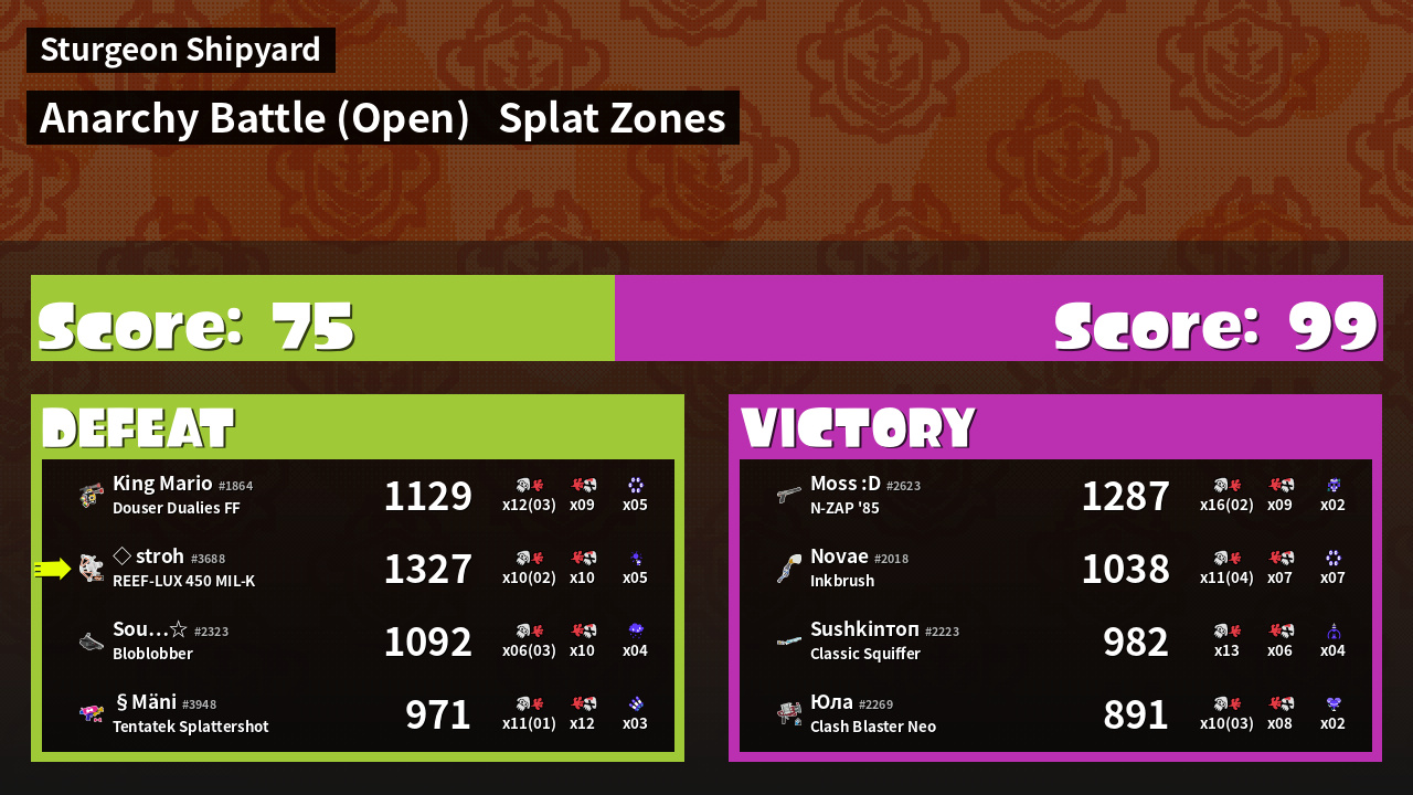 | Mode | Splat Zones - Anarchy Battle (Open) | ||