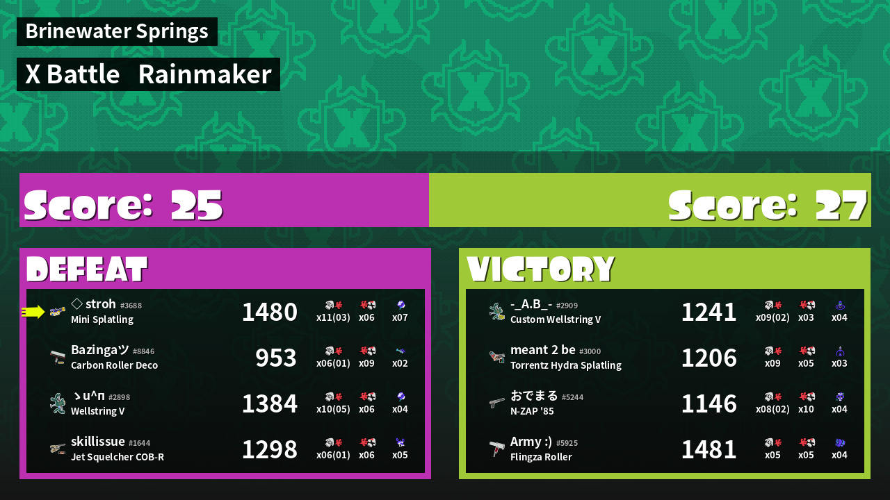 | Medals | #1 Overall Splatter #1 Turf Inker #1 Enemy Splatter | ||