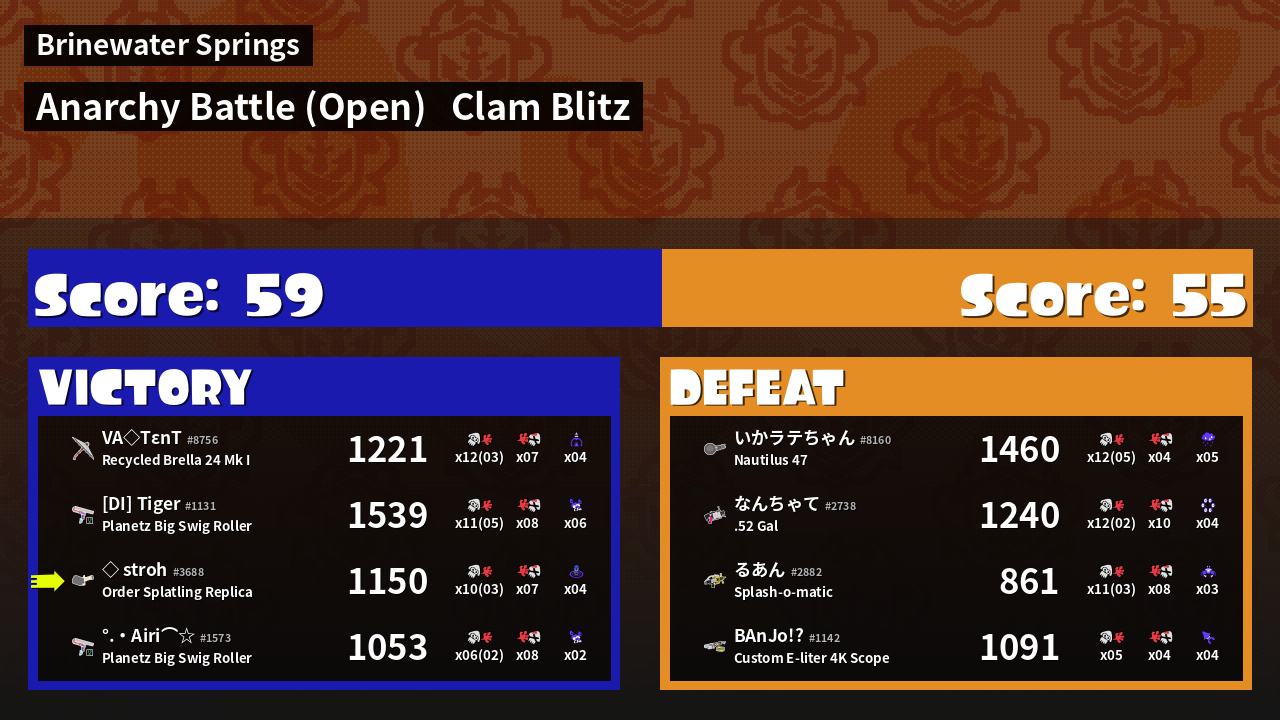 | Mode | Clam Blitz - Anarchy Battle (Open) | ||