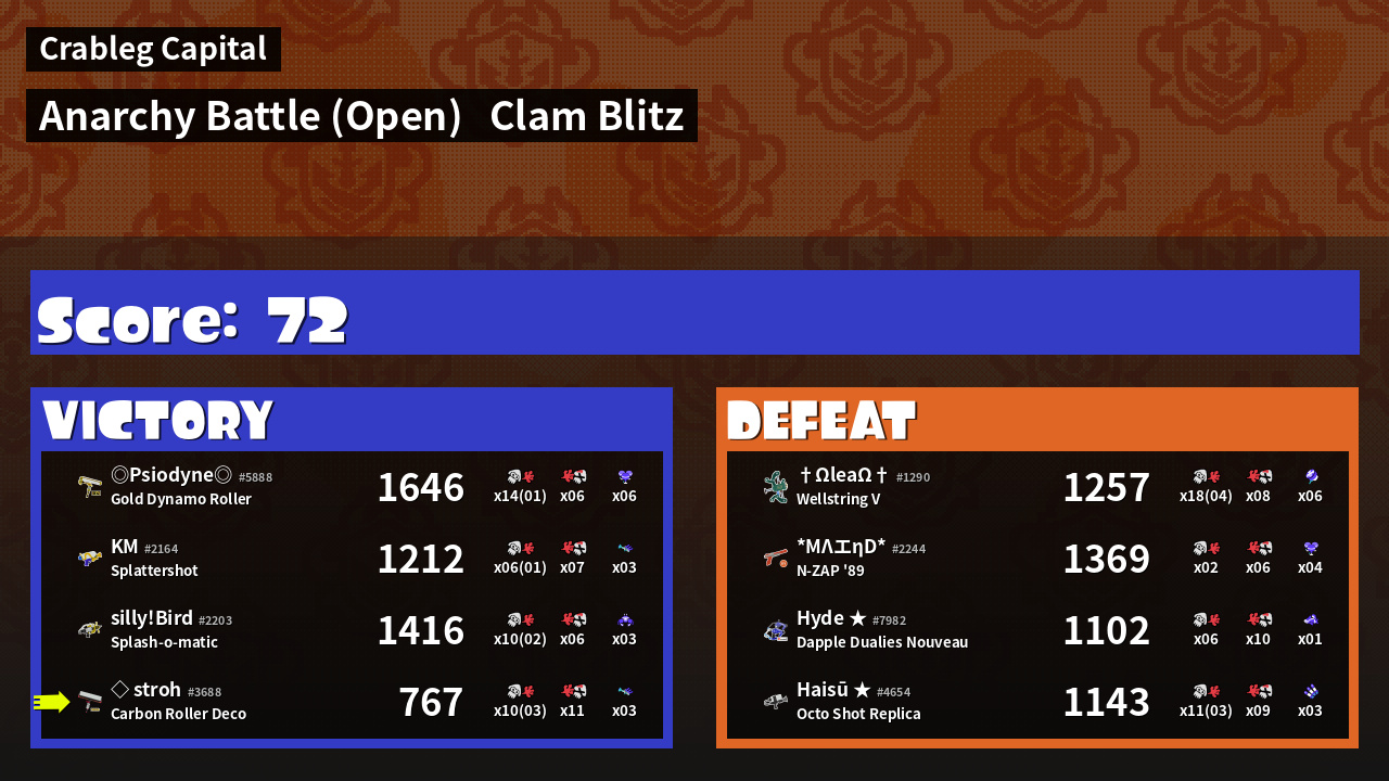 | Mode | Clam Blitz - Anarchy Battle (Open) | ||