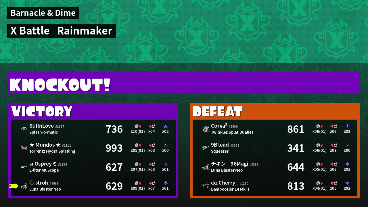 | Medals | #1 Enemy Splatter #2 Overall Splatter #2 Splat Assister | ||
