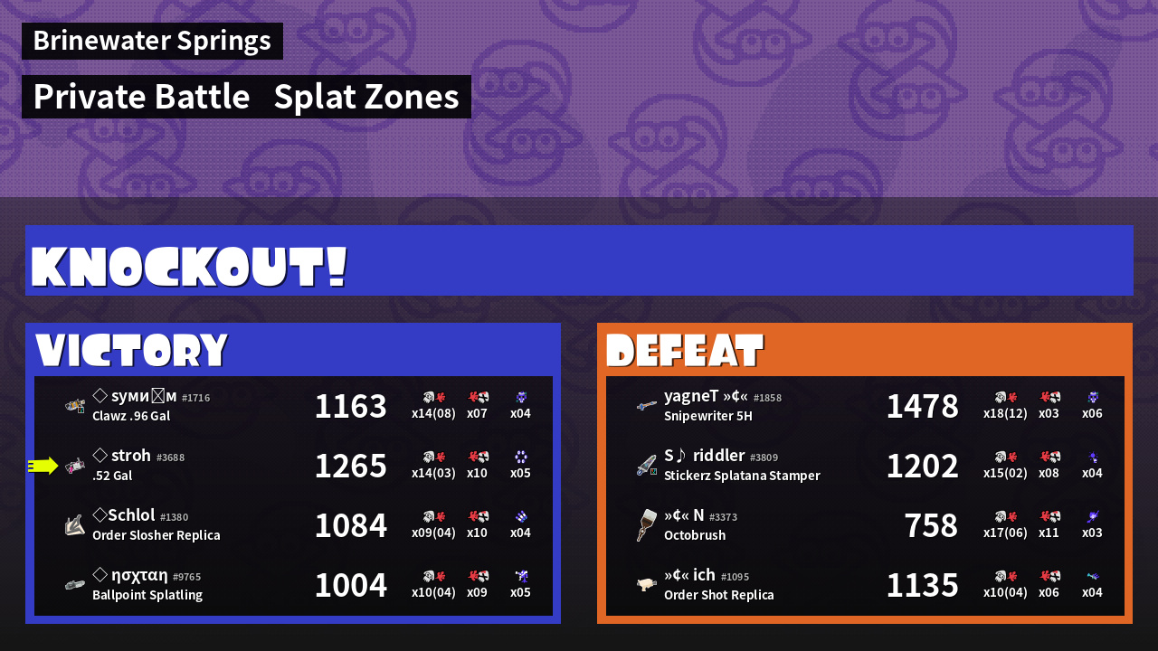 | Mode | Splat Zones - Private Battle | ||