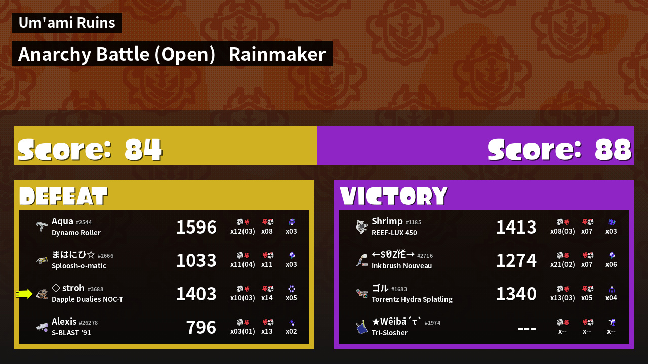 | Mode | Rainmaker - Anarchy Battle (Open) | ||