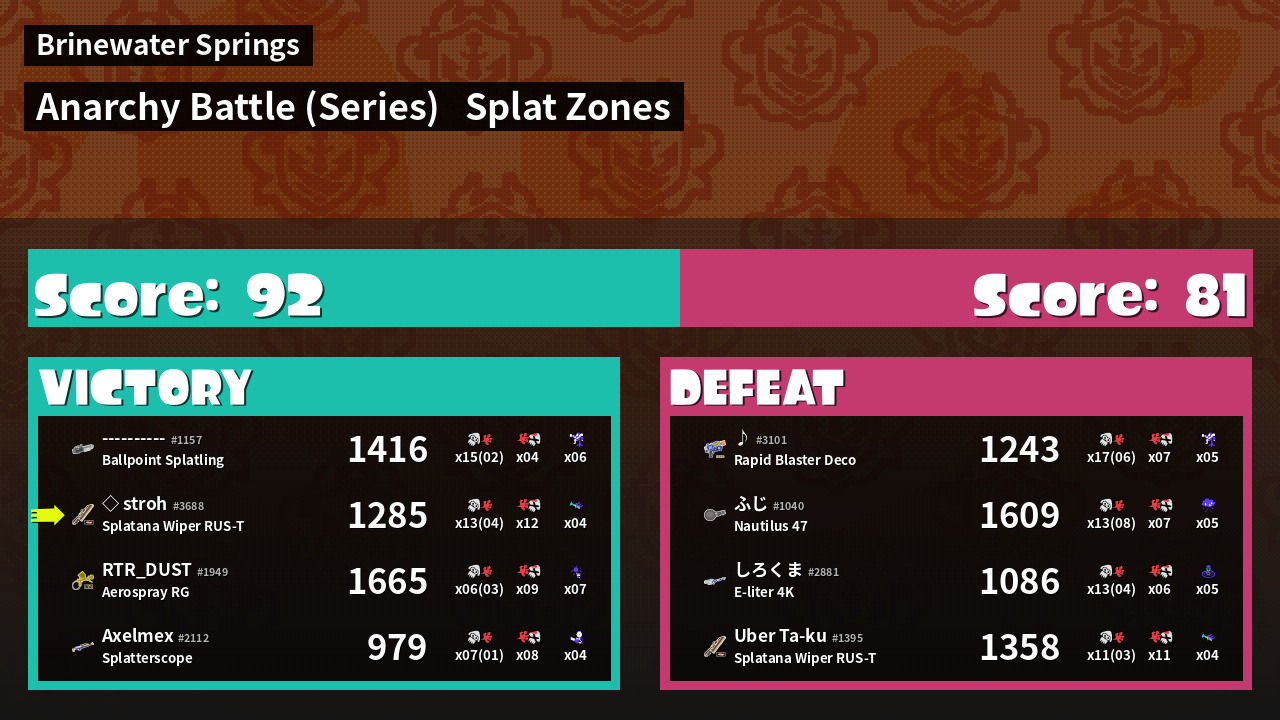 | Mode | Splat Zones - Anarchy Battle (Series) | ||
