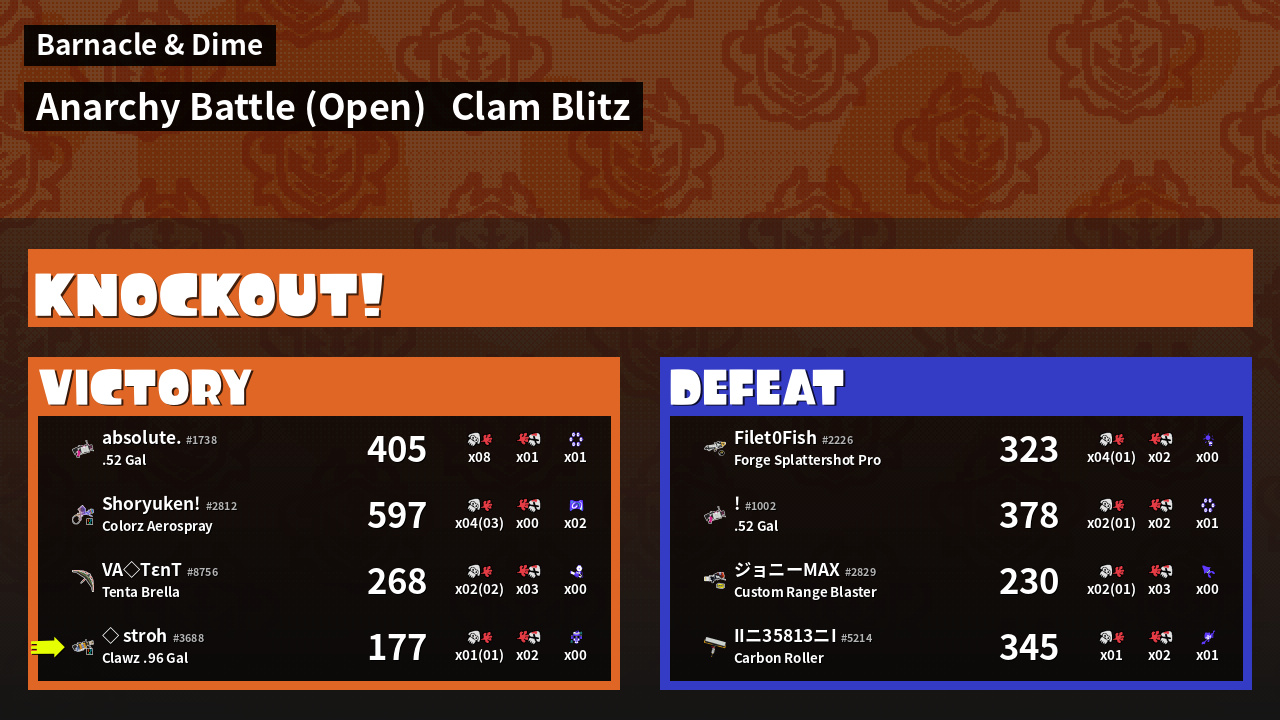 | Mode | Clam Blitz - Anarchy Battle (Open) | ||