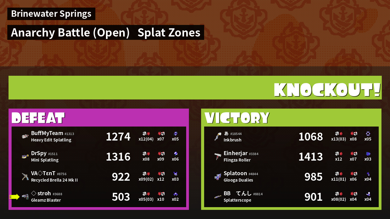 | Mode | Splat Zones - Anarchy Battle (Open) | ||