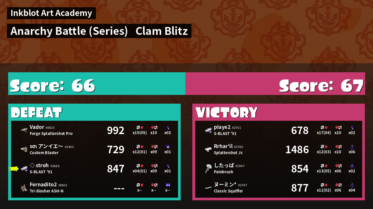 | Mode | Clam Blitz - Anarchy Battle (Series) | ||