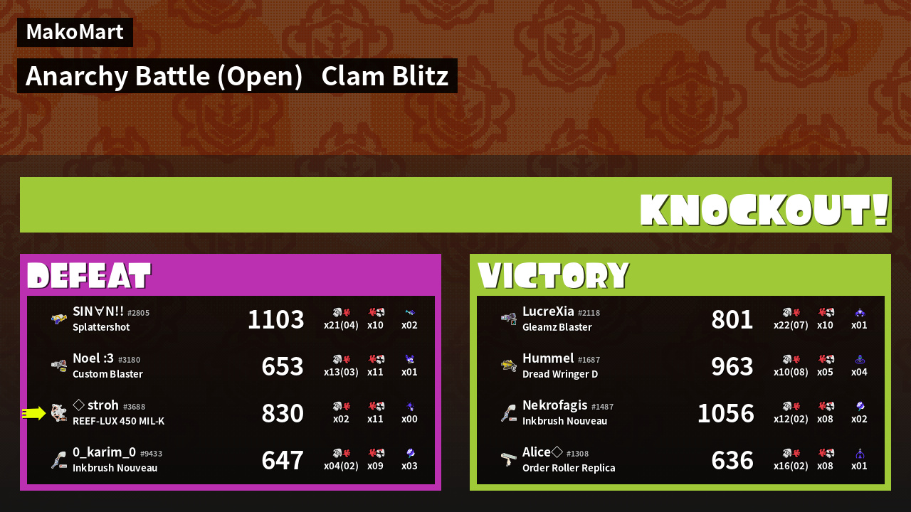 | Mode | Clam Blitz - Anarchy Battle (Open) | ||