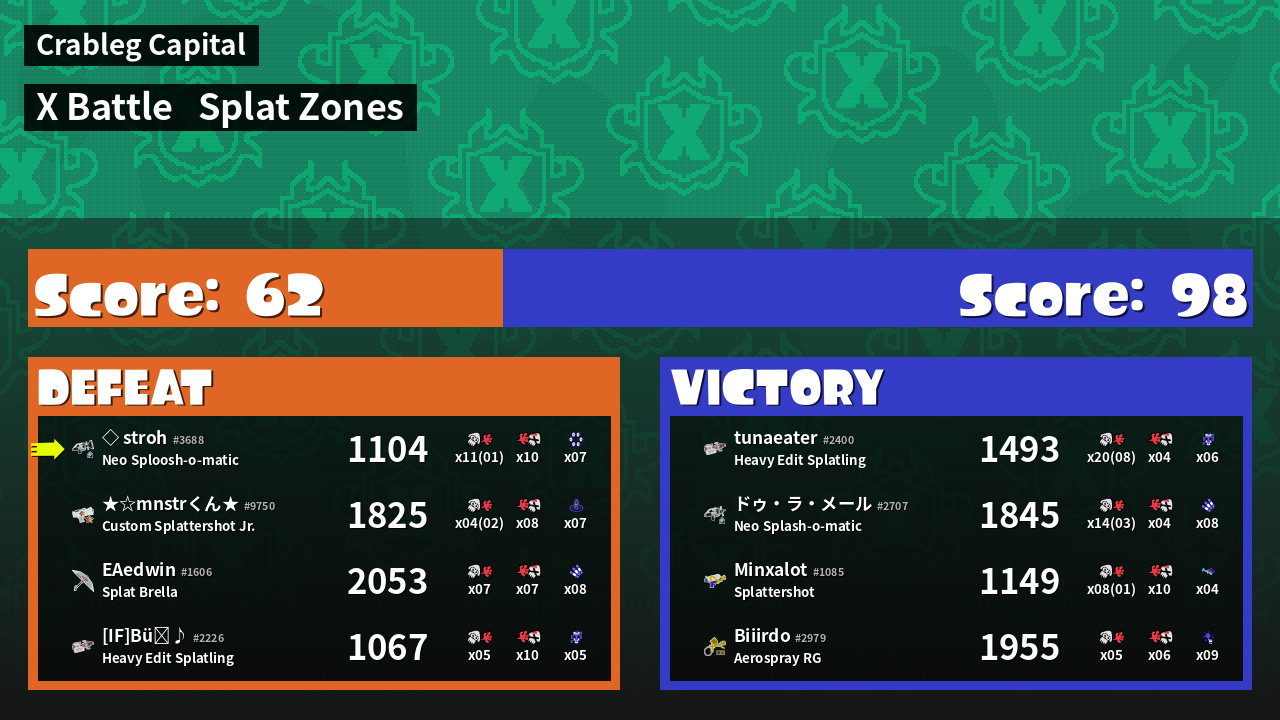 Kills / Deaths | 10 + 1 / 10 = Kill Ratio: 1.00 | ||