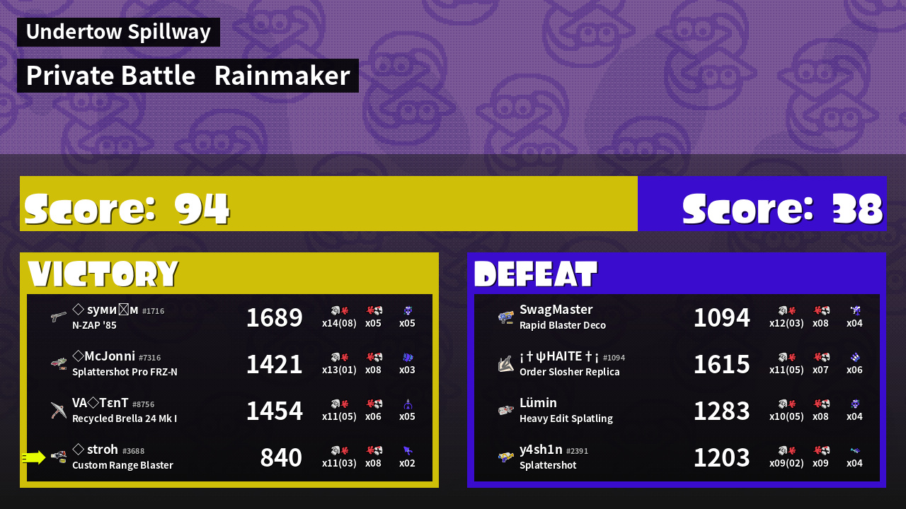 Kills / Deaths | 8 + 3 / 8 = Kill Ratio: 1.00 | ||