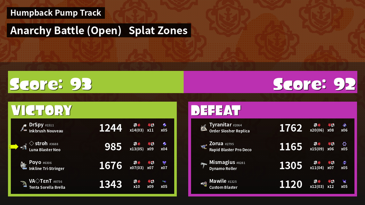 | Mode | Splat Zones - Anarchy Battle (Open) | ||