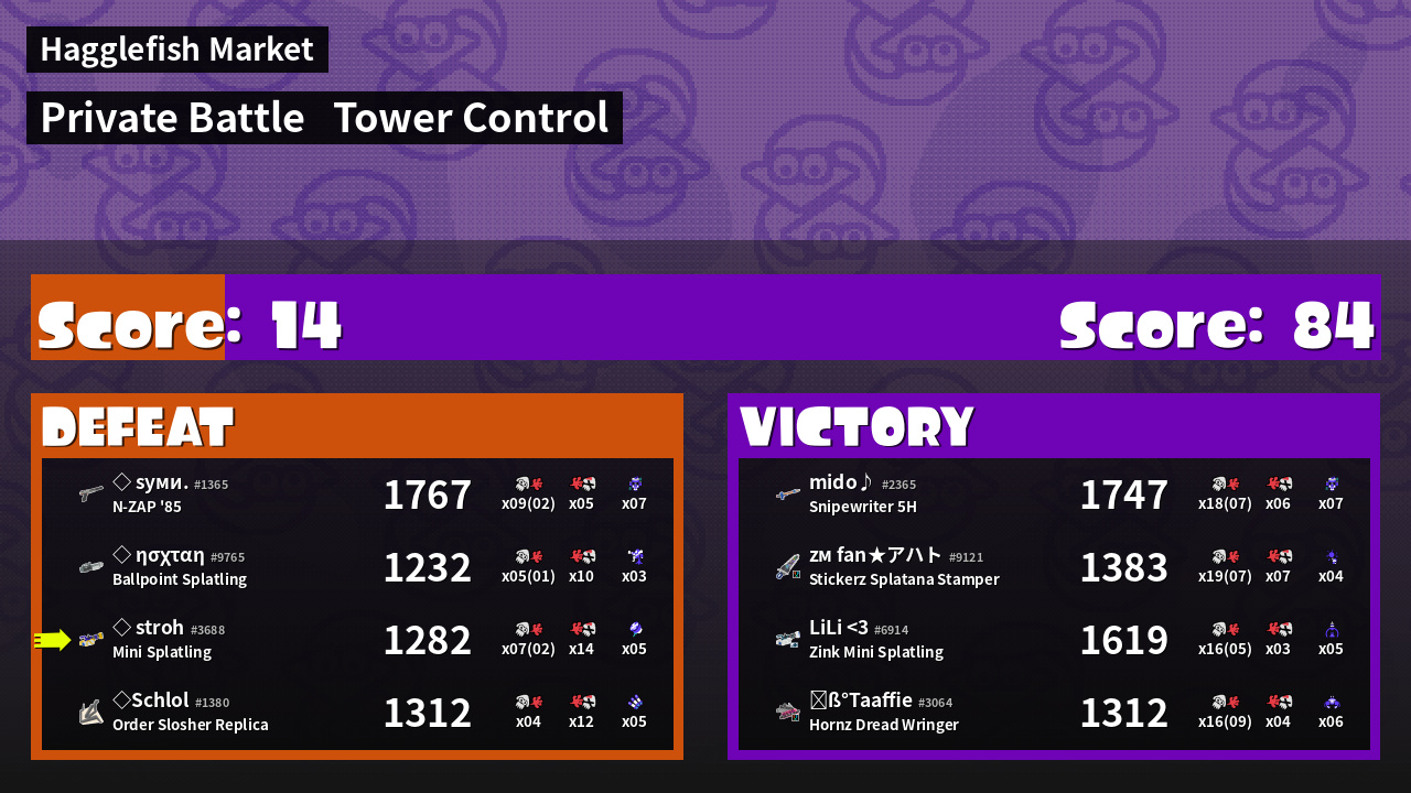 | Medals | #1 Splat Assister #1 Ultra Stamp User #2 Overall Splatter | ||