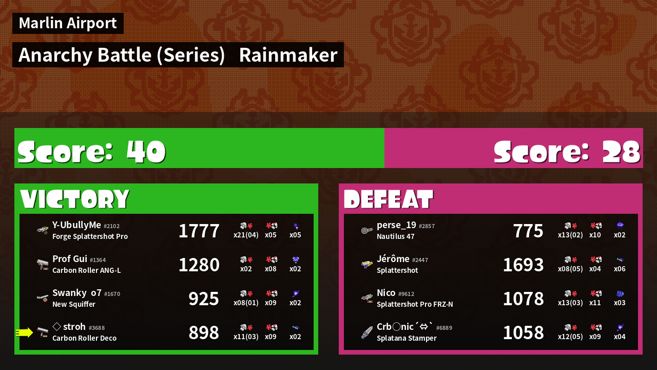 | Weapon | Carbon Roller Deco ( Burst Bomb / Trizooka) | ||