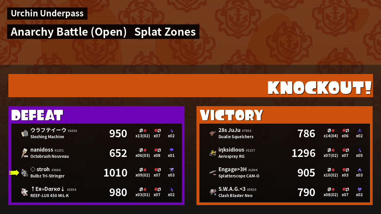 | Mode | Splat Zones - Anarchy Battle (Open) | ||