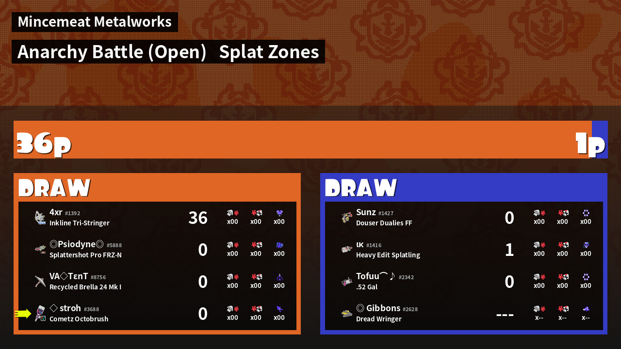 | Mode | Splat Zones - Anarchy Battle (Open) | ||