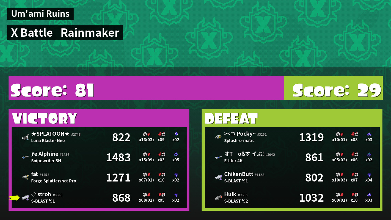 | Weapon | S-BLAST '91 ( Burst Bomb / Booyah Bomb) | ||