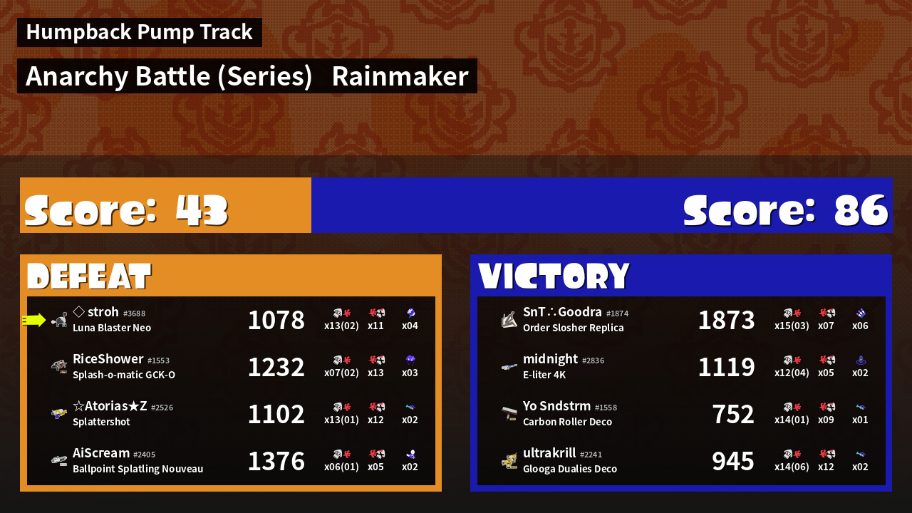 Kills / Deaths | 11 + 2 / 11 = Kill Ratio: 1.00 | ||