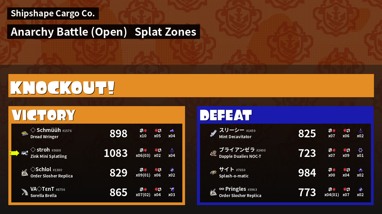 | Mode | Splat Zones - Anarchy Battle (Open) | ||