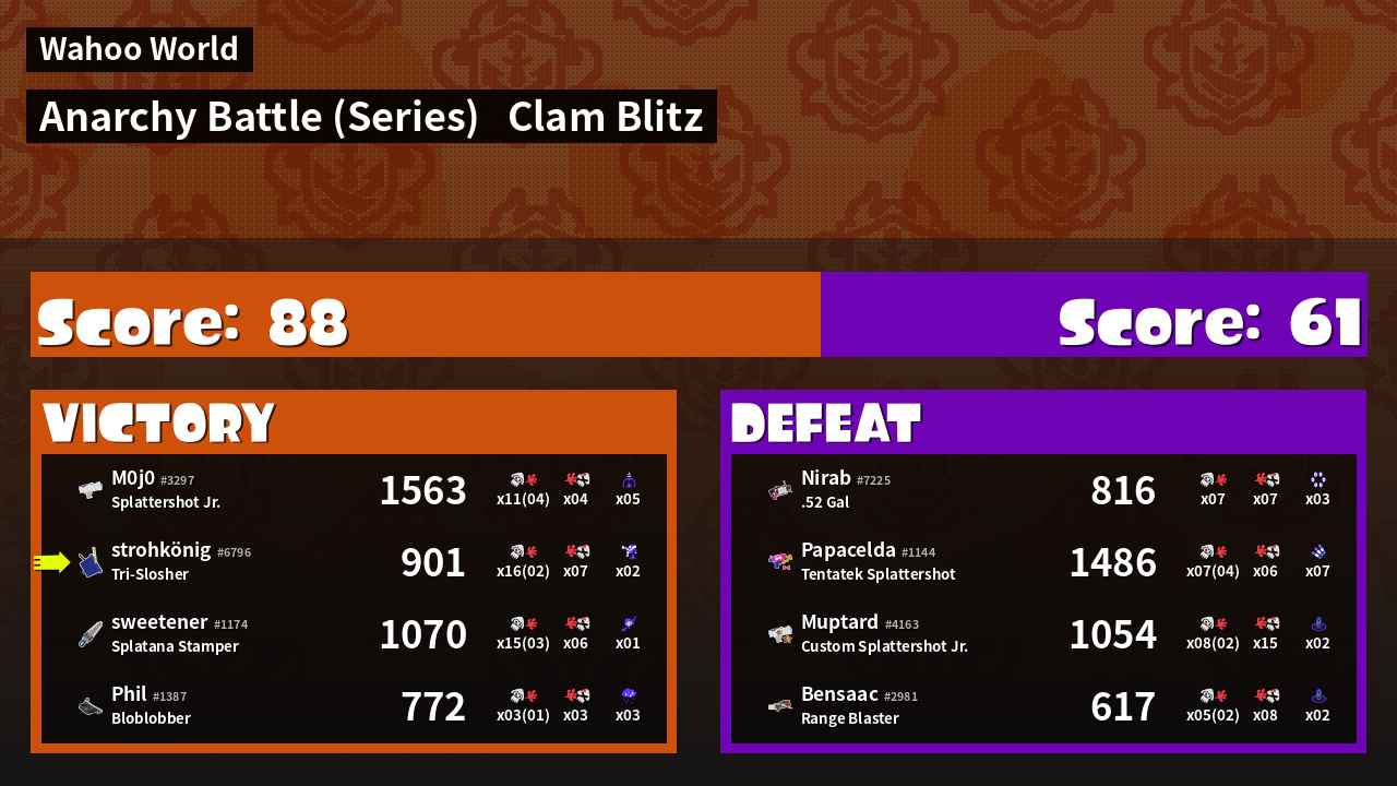 | Mode | Clam Blitz - Anarchy Battle (Series) | ||