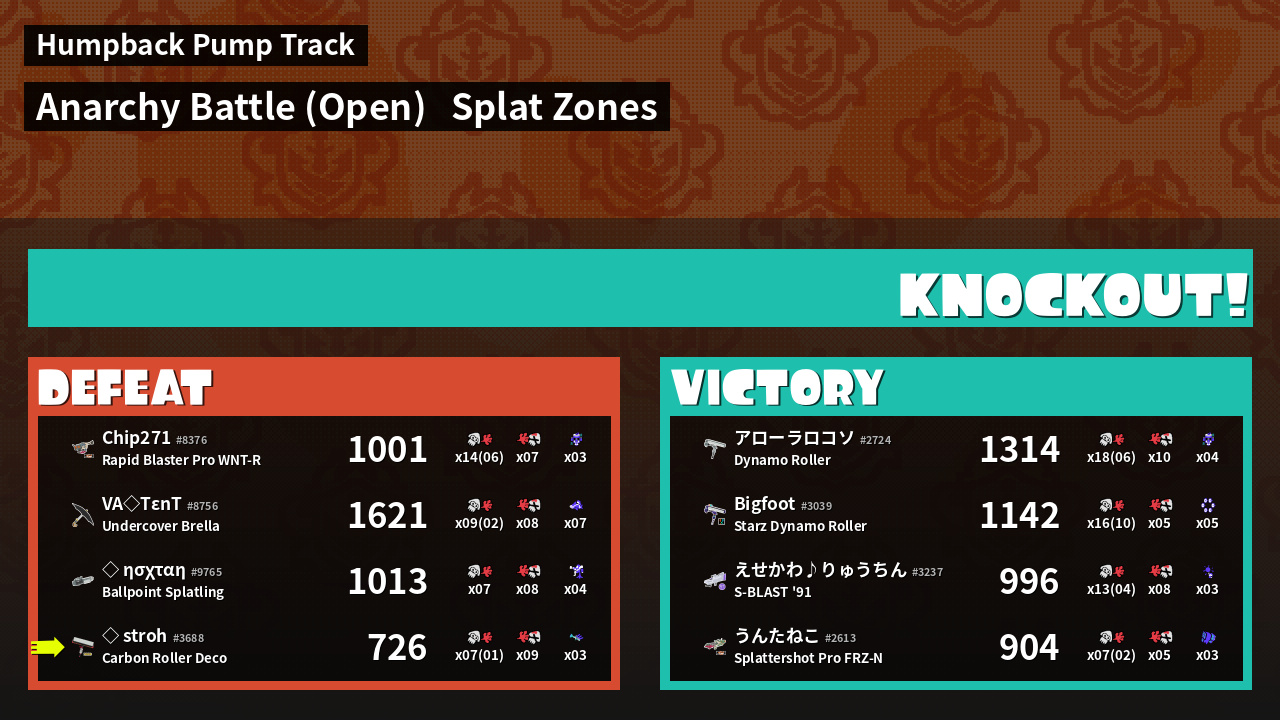 | Mode | Splat Zones - Anarchy Battle (Open) | ||