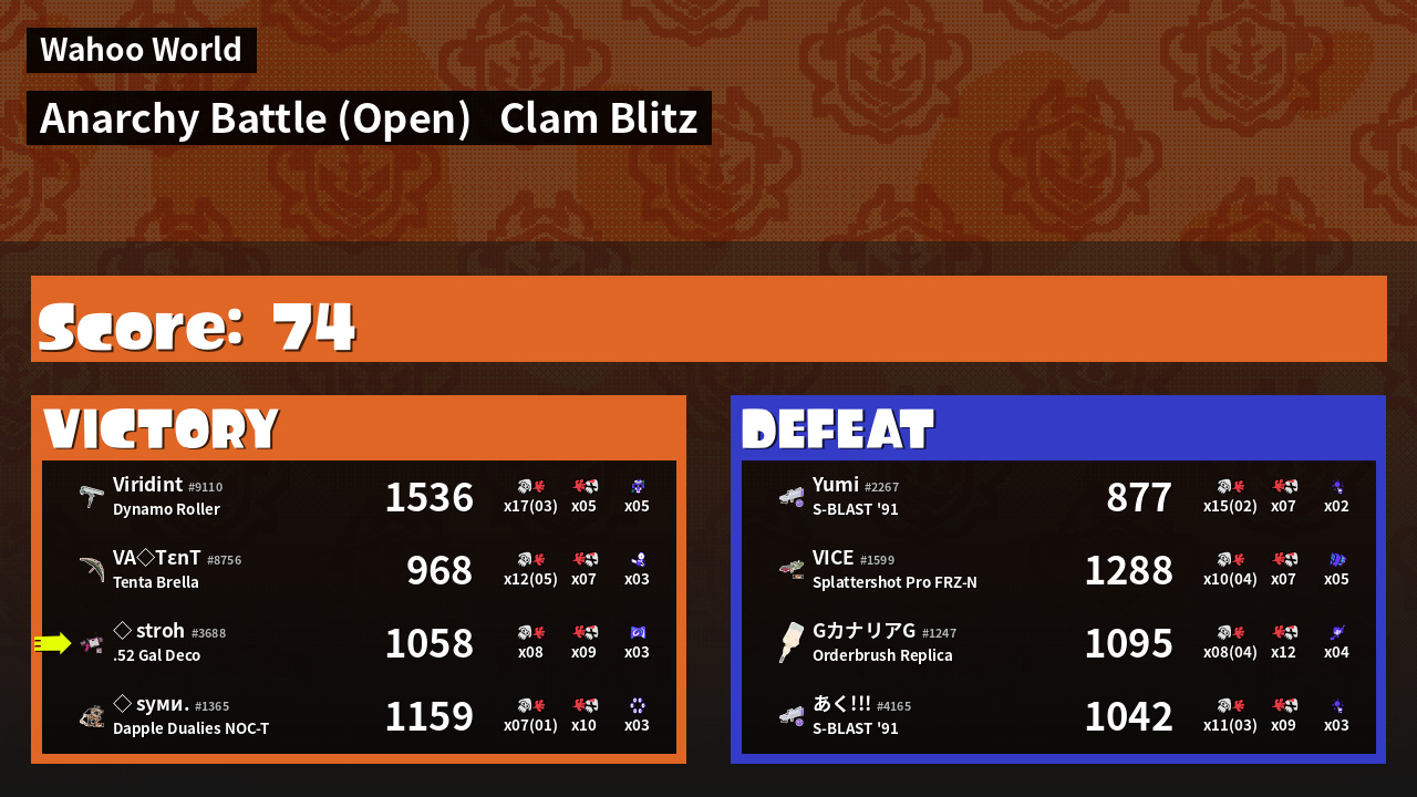 | Mode | Clam Blitz - Anarchy Battle (Open) | ||