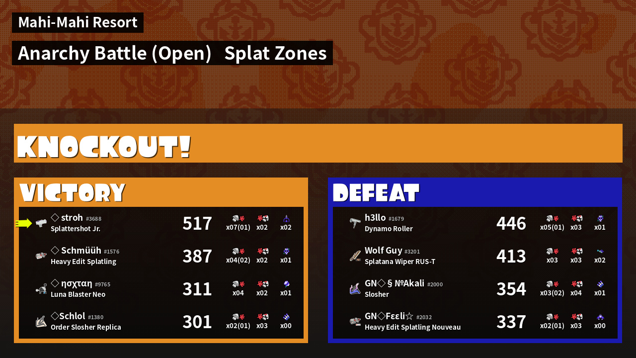 | Mode | Splat Zones - Anarchy Battle (Open) | ||