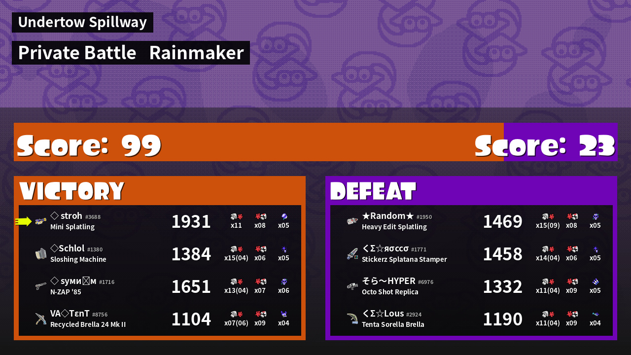 | Weapon | Mini Splatling ( Burst Bomb / Ultra Stamp) | ||