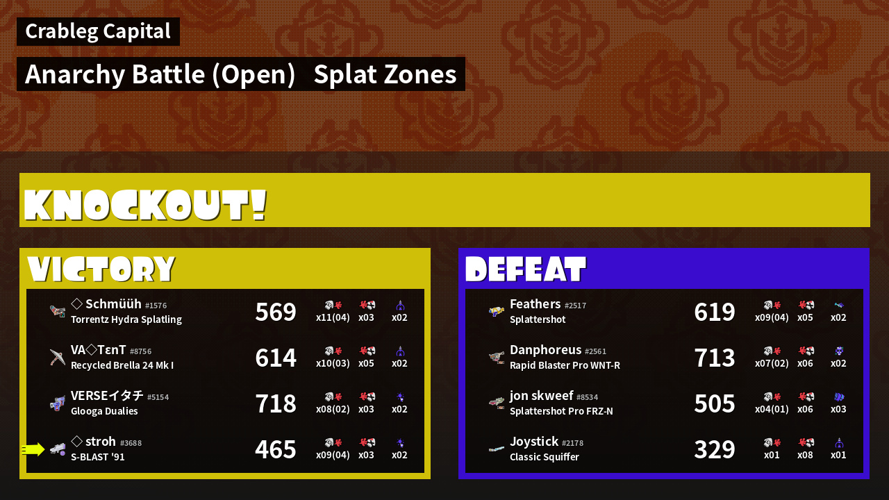 | Mode | Splat Zones - Anarchy Battle (Open) | ||