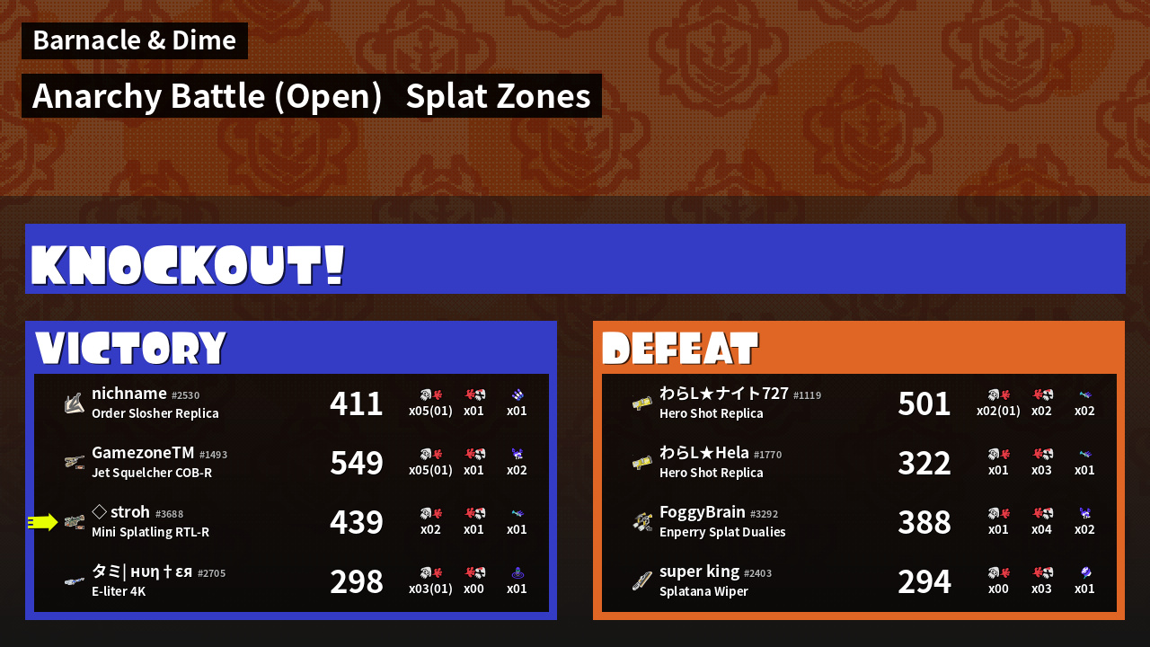 | Mode | Splat Zones - Anarchy Battle (Open) | ||