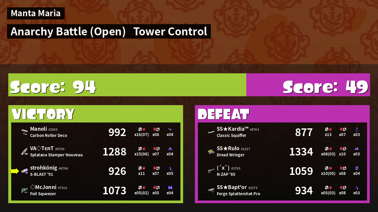 | Mode | Tower Control - Anarchy Battle (Open) | ||