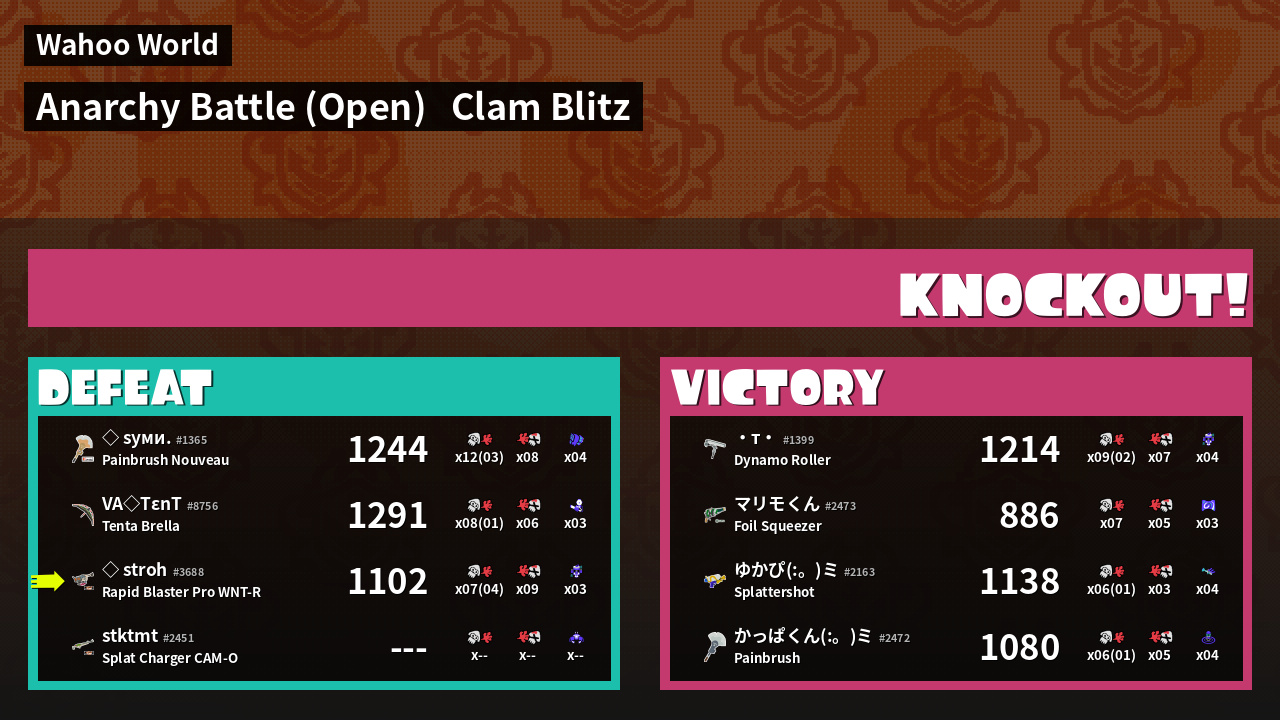 | Mode | Clam Blitz - Anarchy Battle (Open) | ||