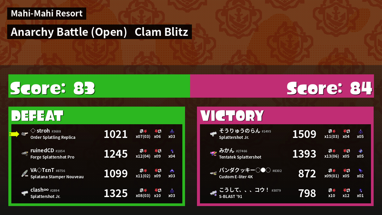 | Mode | Clam Blitz - Anarchy Battle (Open) | ||