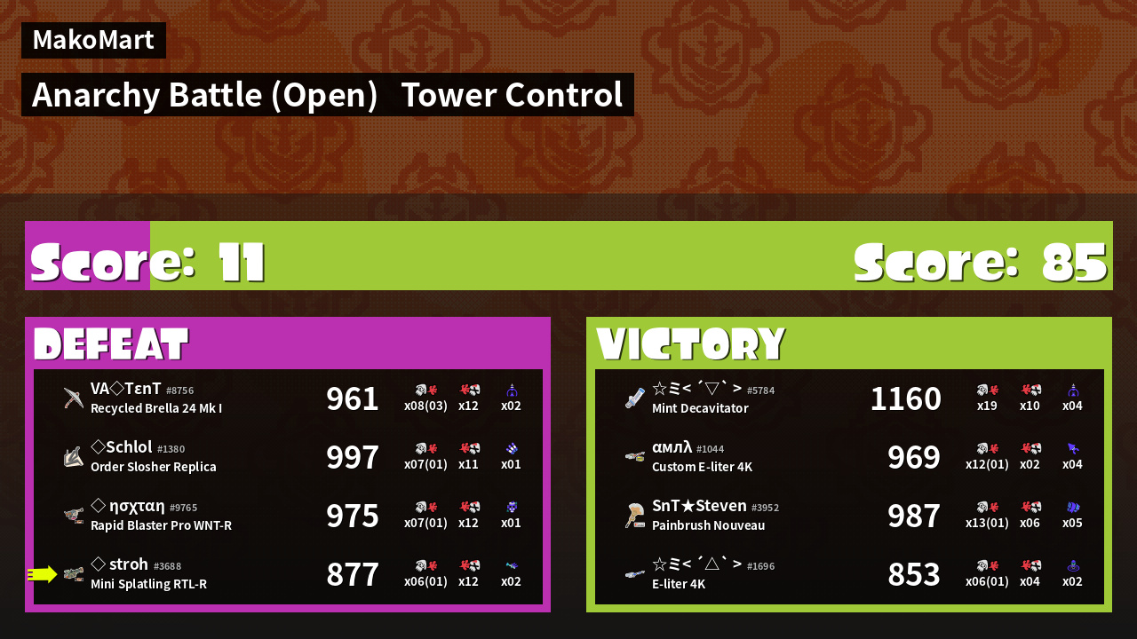 | Mode | Tower Control - Anarchy Battle (Open) | ||