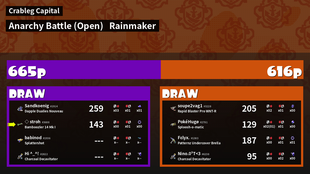 | Mode | Rainmaker - Anarchy Battle (Open) | ||