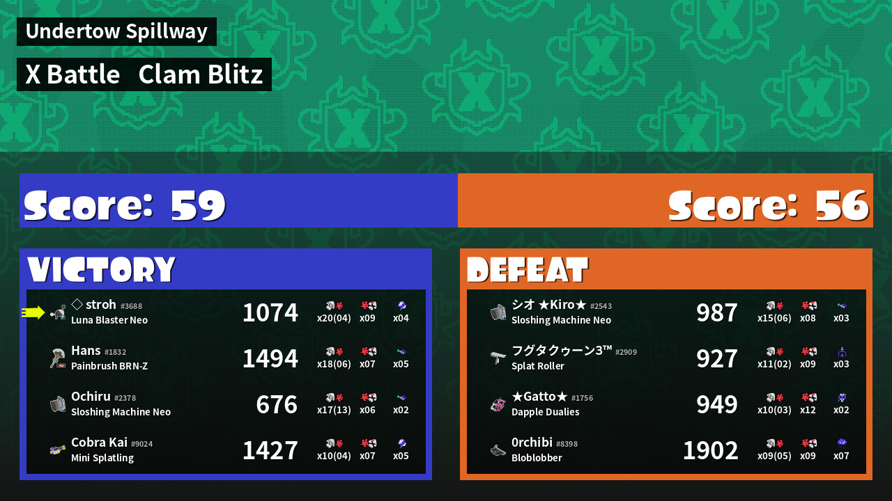 | Mode | Clam Blitz - X Battle | ||